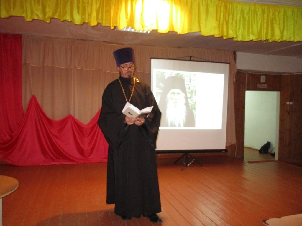 Около 70 школьников 5-10 классов собрались в актовом зале Угловской школы послушать короткие истории о войне из непридуманных рассказов «На земле мы только учимся жить» протоирея Валентина Бирюкова (в монашестве иеромонах Иосиф), а также отрывки из книги «Жизнеописание», архимандрита Кирилла (Павлова).