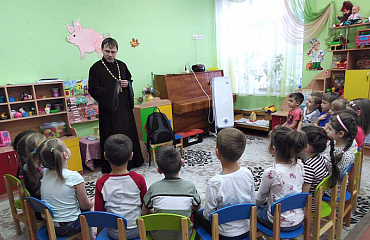 Накануне замечательного праздника 23 февраля "Центр развития ребенка - детский сад N 90 посетил настоятель храма во имя пророка Самуила иерей Евгений Вжесневский. В рамках знакомства с православными книгами священник рассказал детям о первых русских защитниках – славных богатырях Илье Муромце, Добрыне Никитиче и Алеше Поповиче, о том, что на Руси всегда чтили силу богатырскую и прославляли ее в сказаниях и песнях.