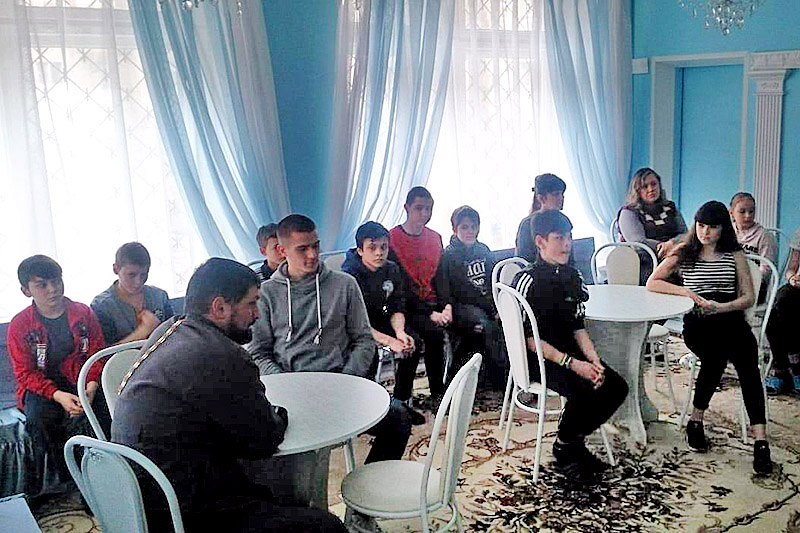В ходе встречи священнослужитель и молодые люди обсудили животрепещущие вопросы морально-нравственного развития личности и совершаемых ею поступков с точки зрения христианства.
