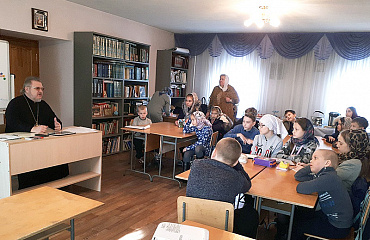 Настоятель храма протоиерей Геннадий Ковалев познакомил ребят с жизнью святых людей, прославивших землю Русскую.